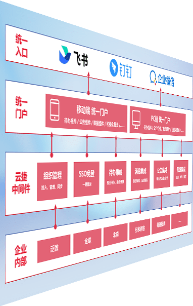 对协作平台提供支持服务,,,,支持企业应用与协作平台对接,,包含组织同步、、消息集成、、、、待办集成等。。支持目前主流的协作平台:钉钉、、、企微和飞书。。